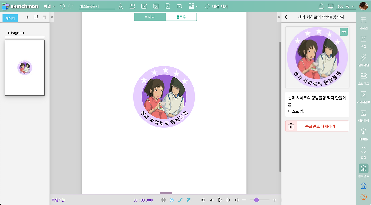 우측 메뉴 중 "콤포넌트" 를 선택하면 디자인 콤포넌트들이 출력되는데, 이곳에 내가 만든 디자인도 등록할 수 있습니다.
