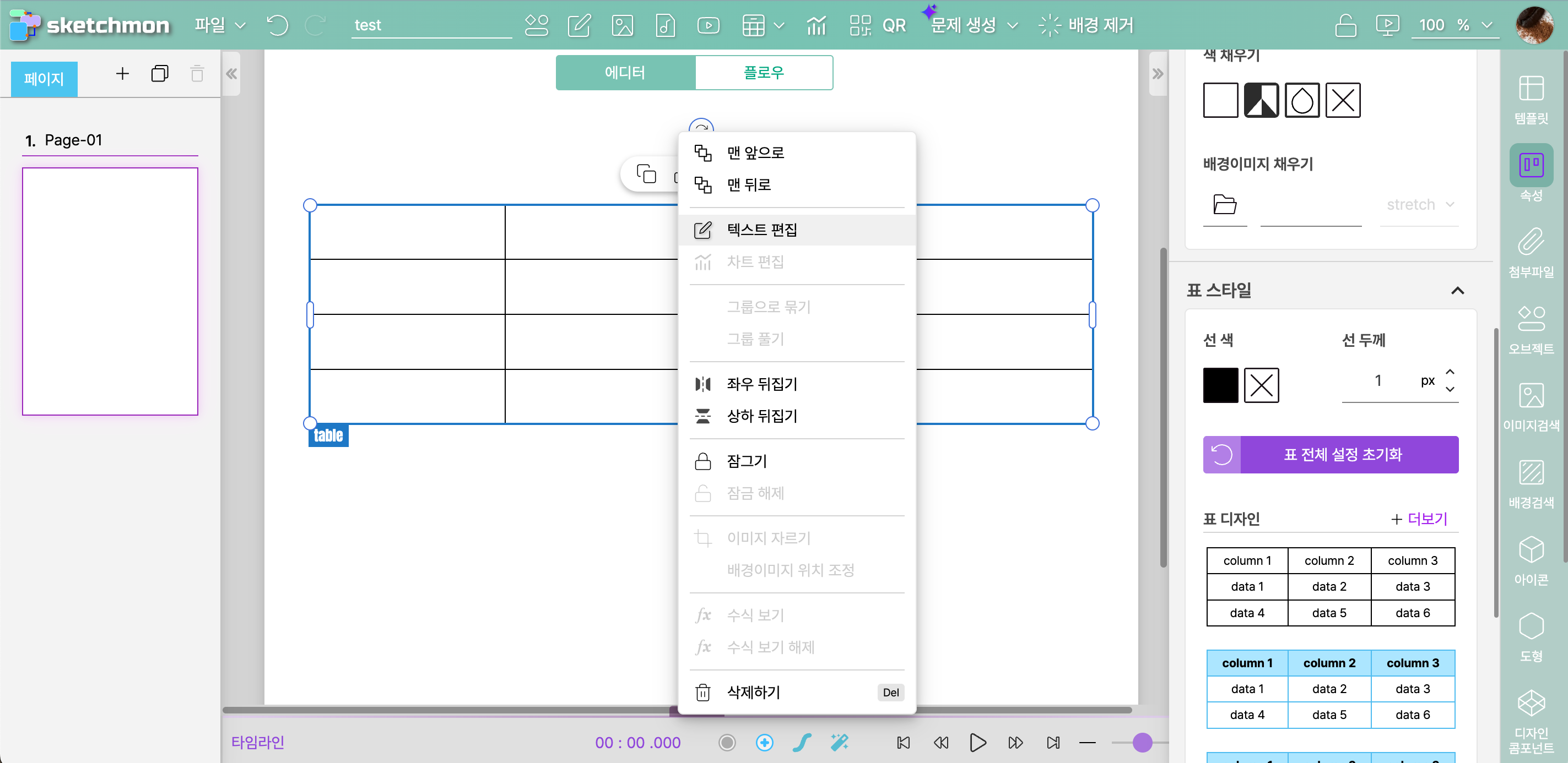 스케치몬에서는 표를 쉽게 만들고, 간편하게 디자인을 변경할 수 있습니다.