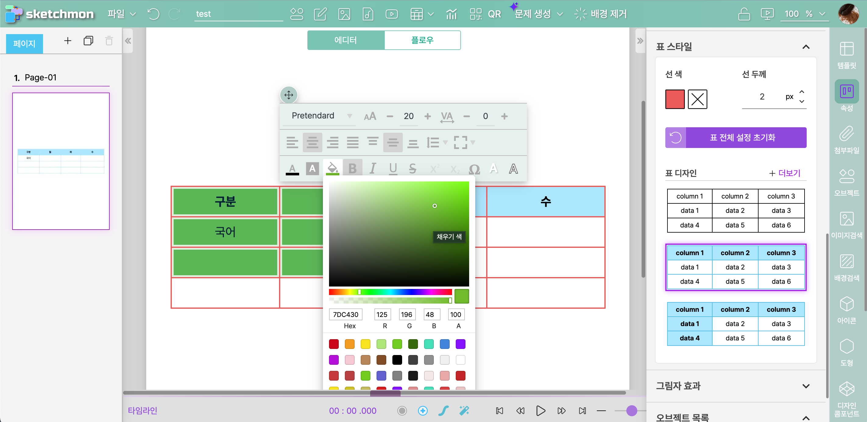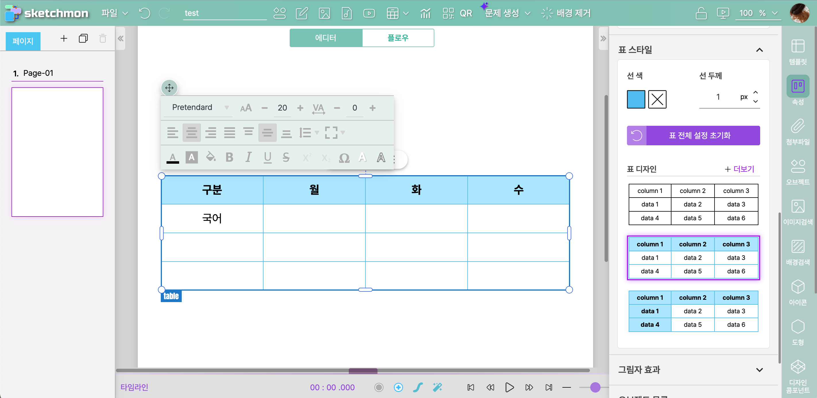 스케치몬에서는 표를 쉽게 만들고, 간편하게 디자인을 변경할 수 있습니다.