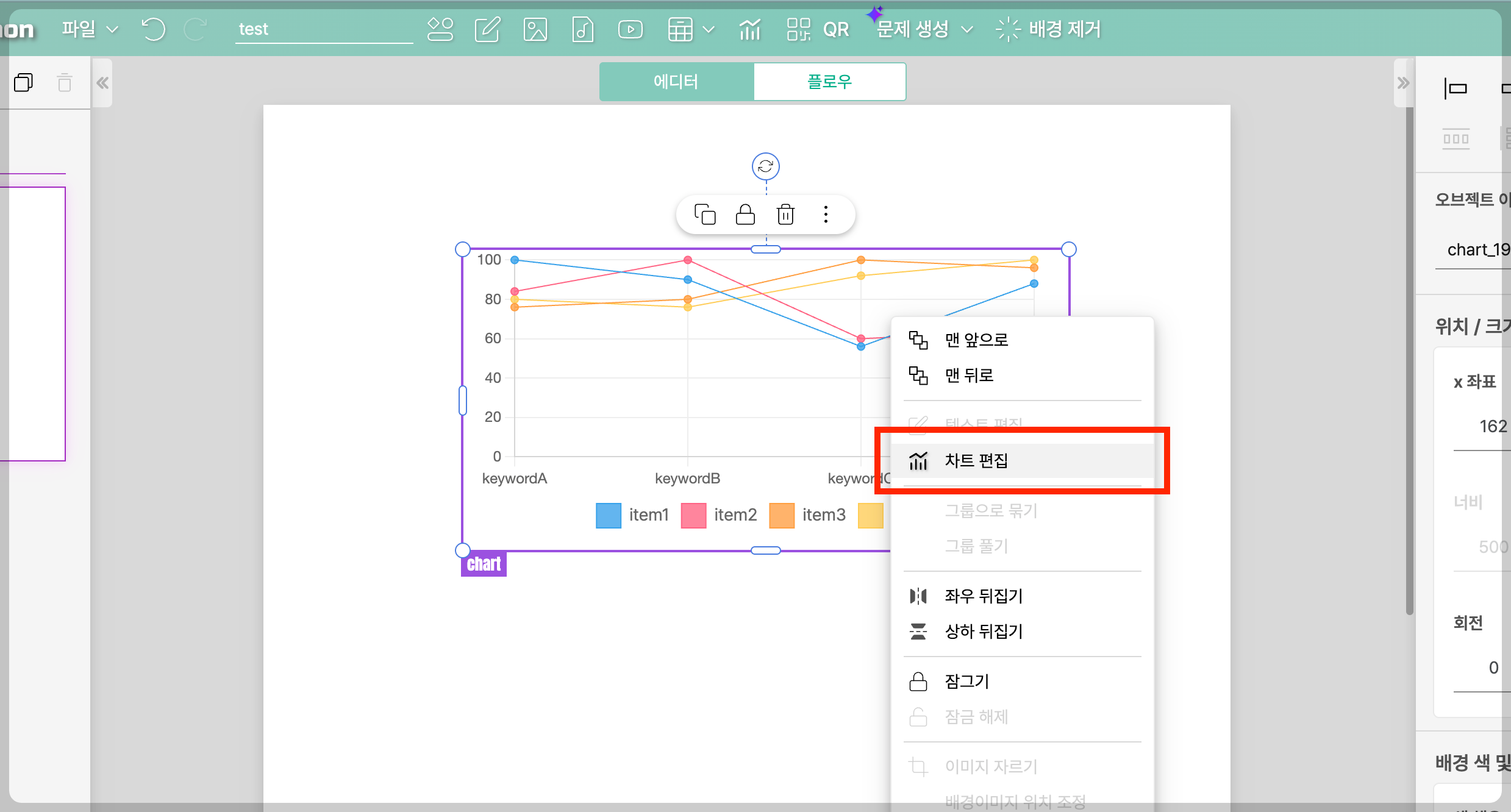4. 이미 만들어진 차트는 마우스로 더블클릭하거나 마우스 우클릭 메뉴에서 [차트 편집]을 선택하면 다시 수정 가능합니다.