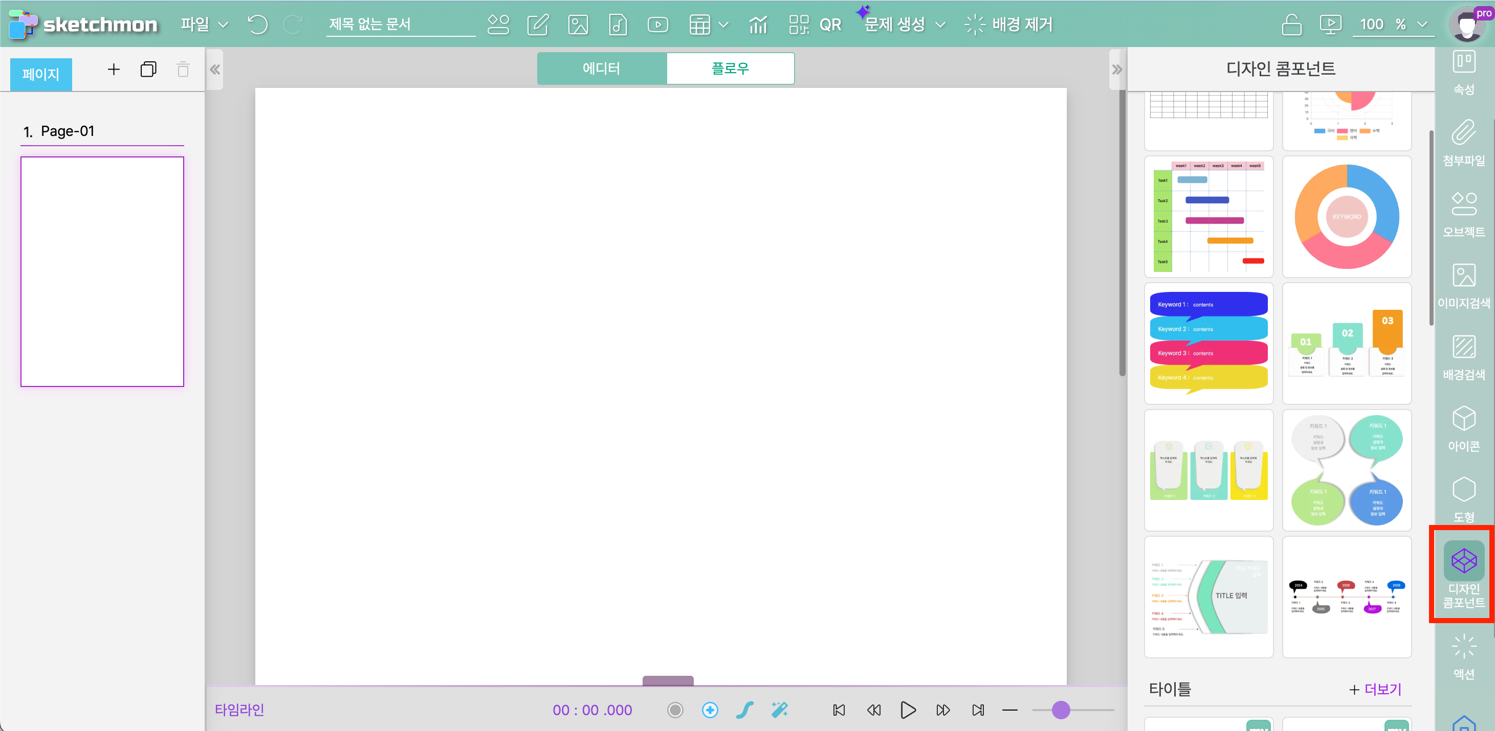 1. 우측 메뉴 중 [디자인 콤포넌트] 메뉴를 선택합니다