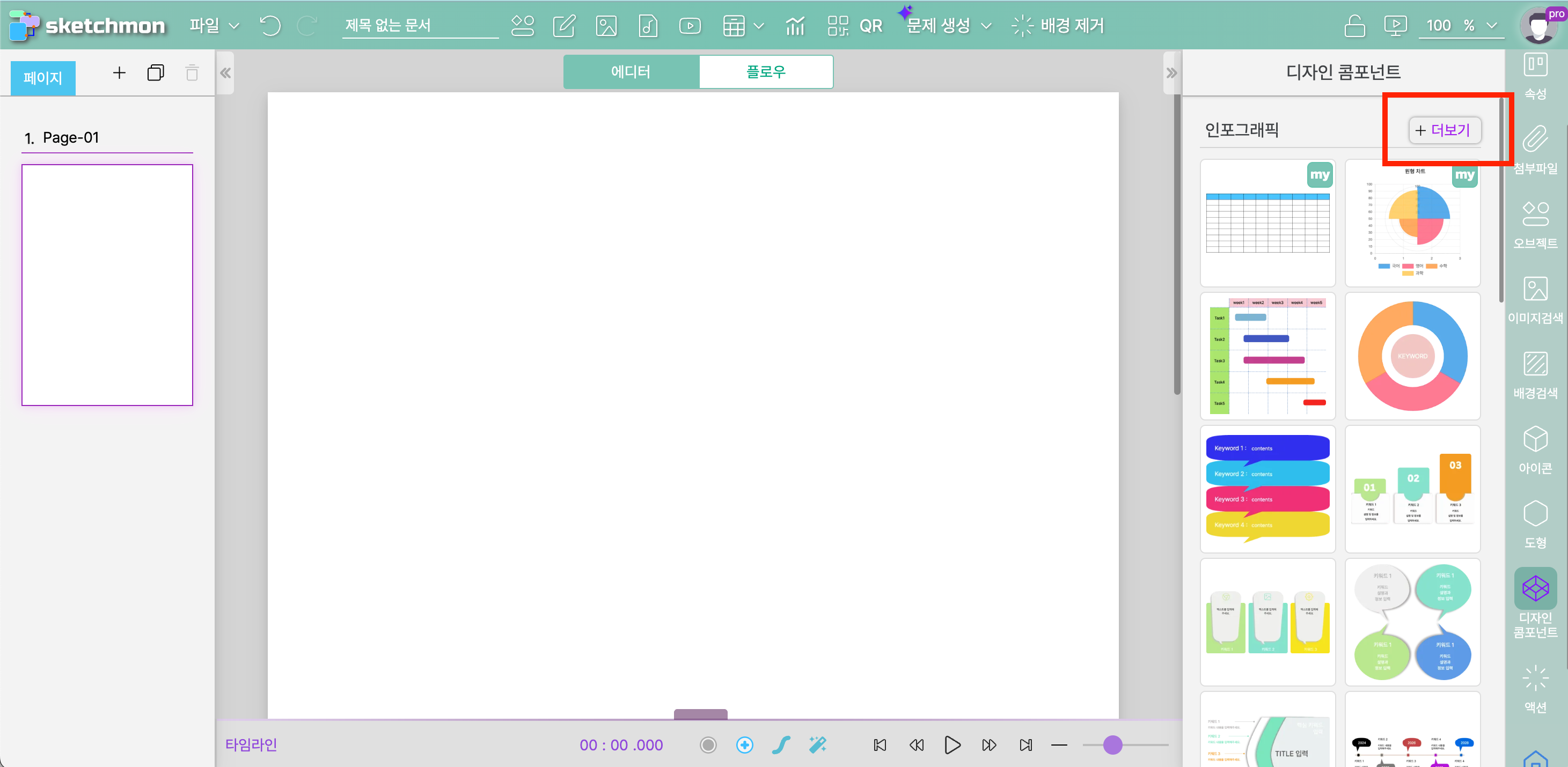 2. 각 디자인 콤포넌트 카테고리 우측의 [+더보기] 를 클릭하면 해당 카테고리의 전체 콤포넌트를 확인할 수 있습니다.