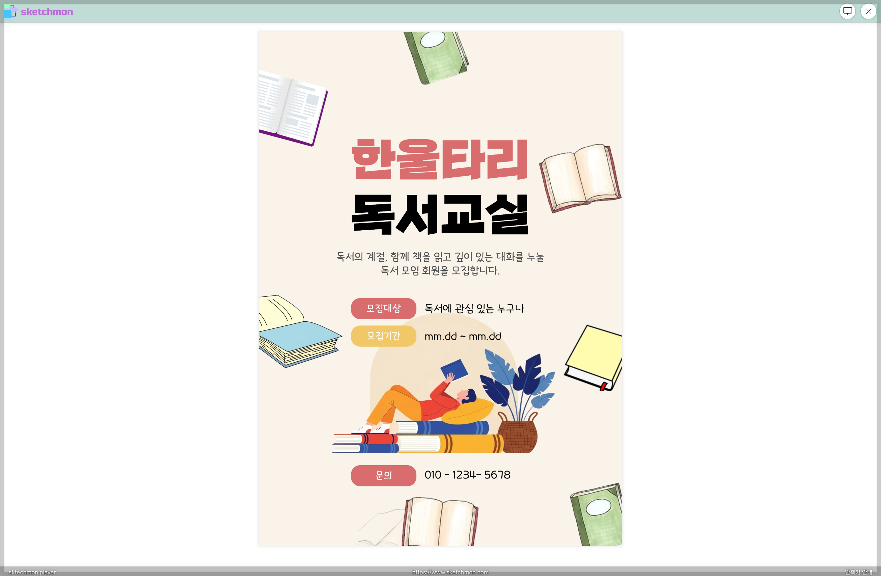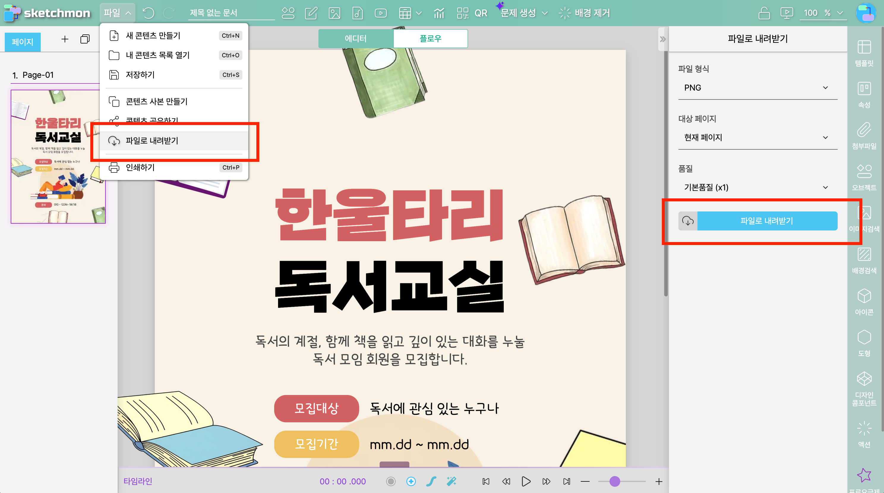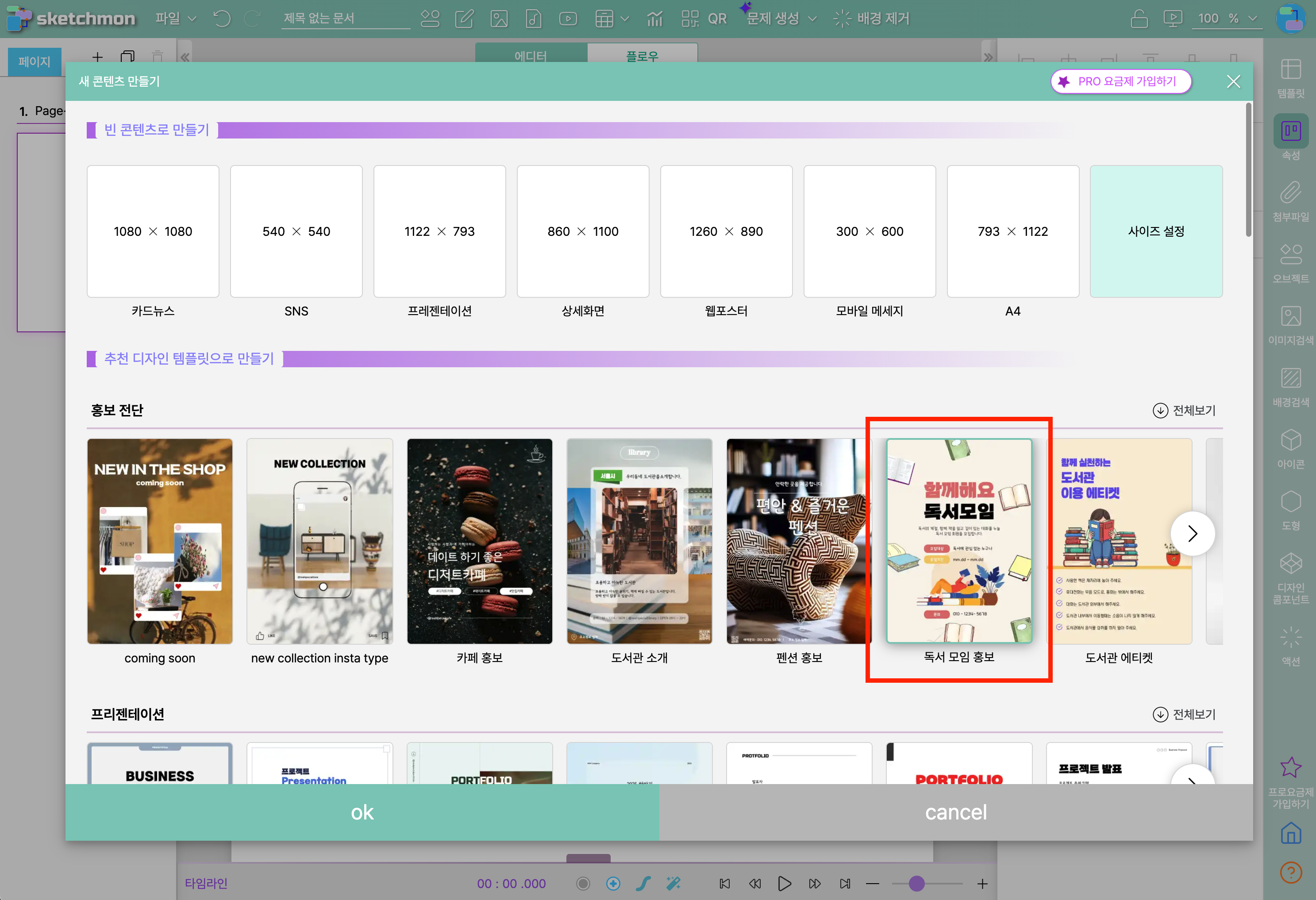 (아래 그림에서는 "독서 모임 홍보" 템플릿을 선택했습니다.)