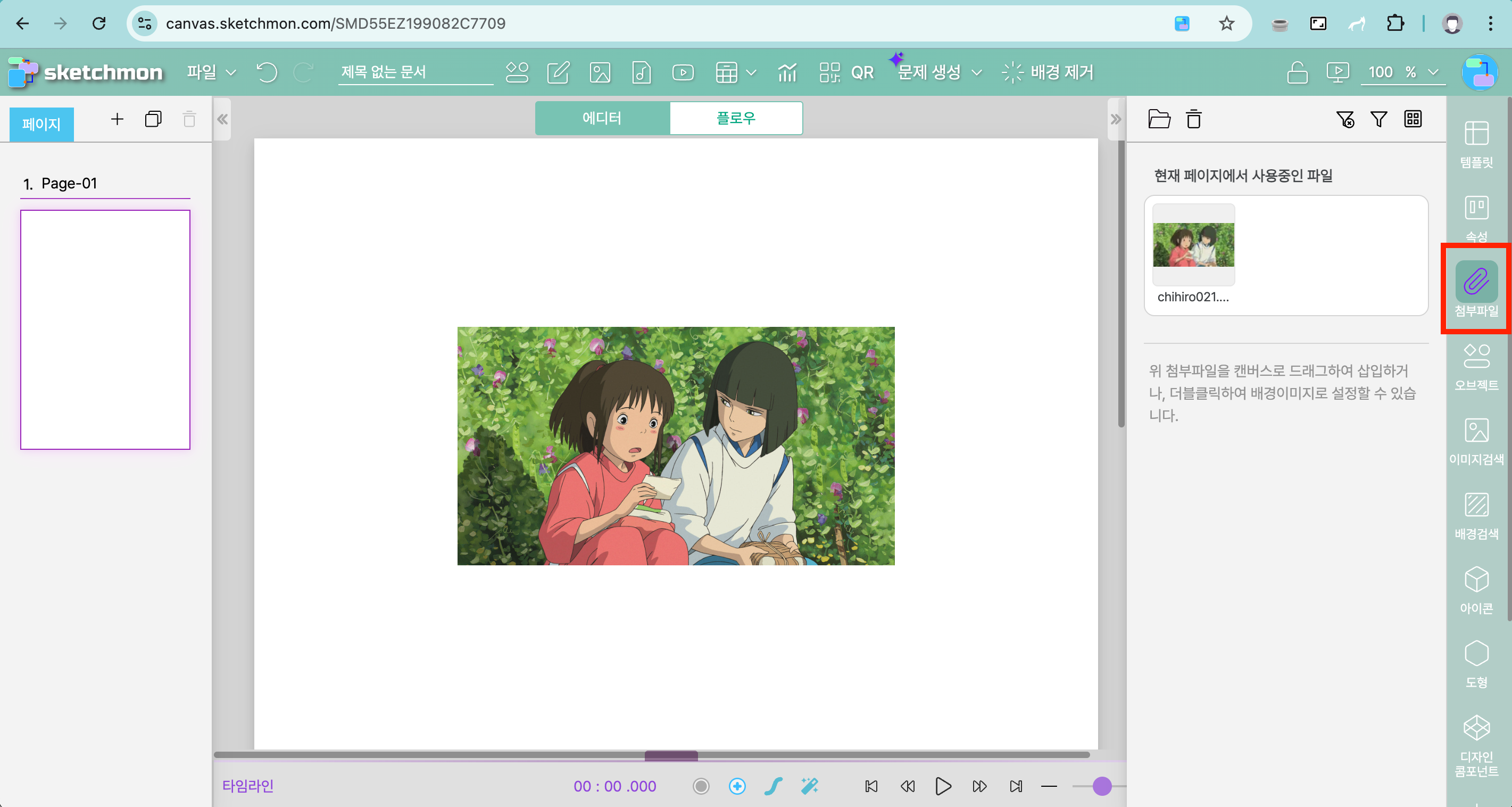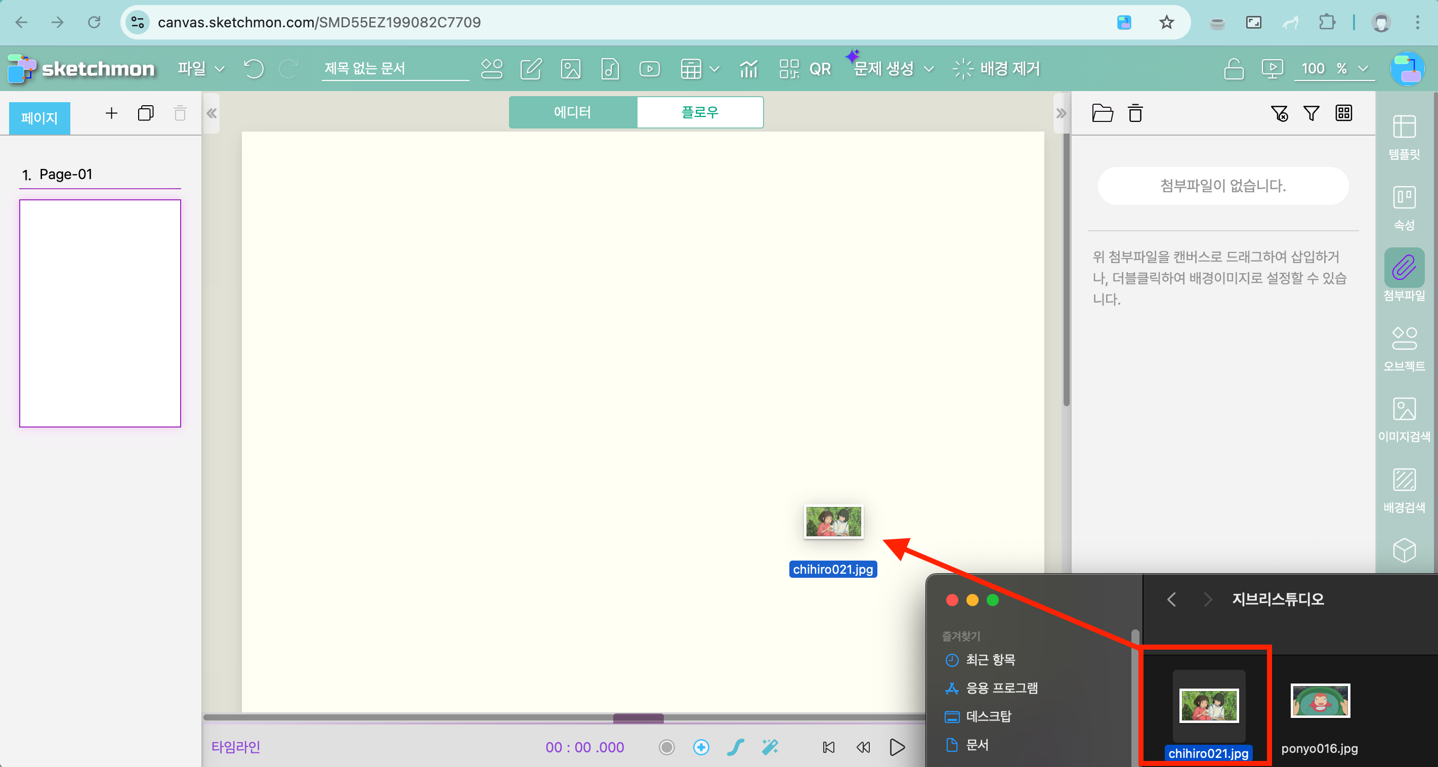 PC 내에 있는 이미지 파일을 스케치몬 캔버스 영역에 드래그/드롭 하여 이미지를 넣습니다.