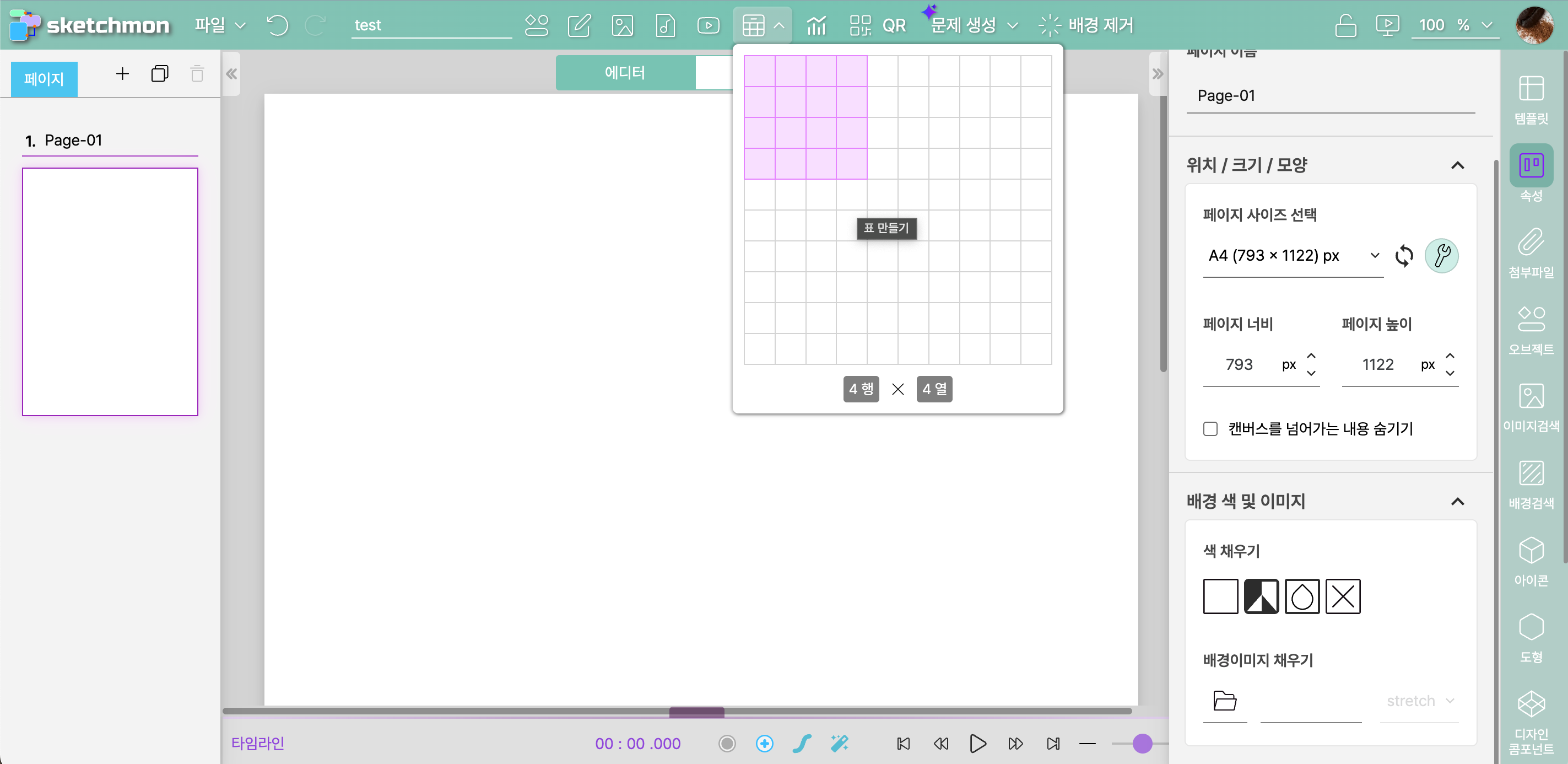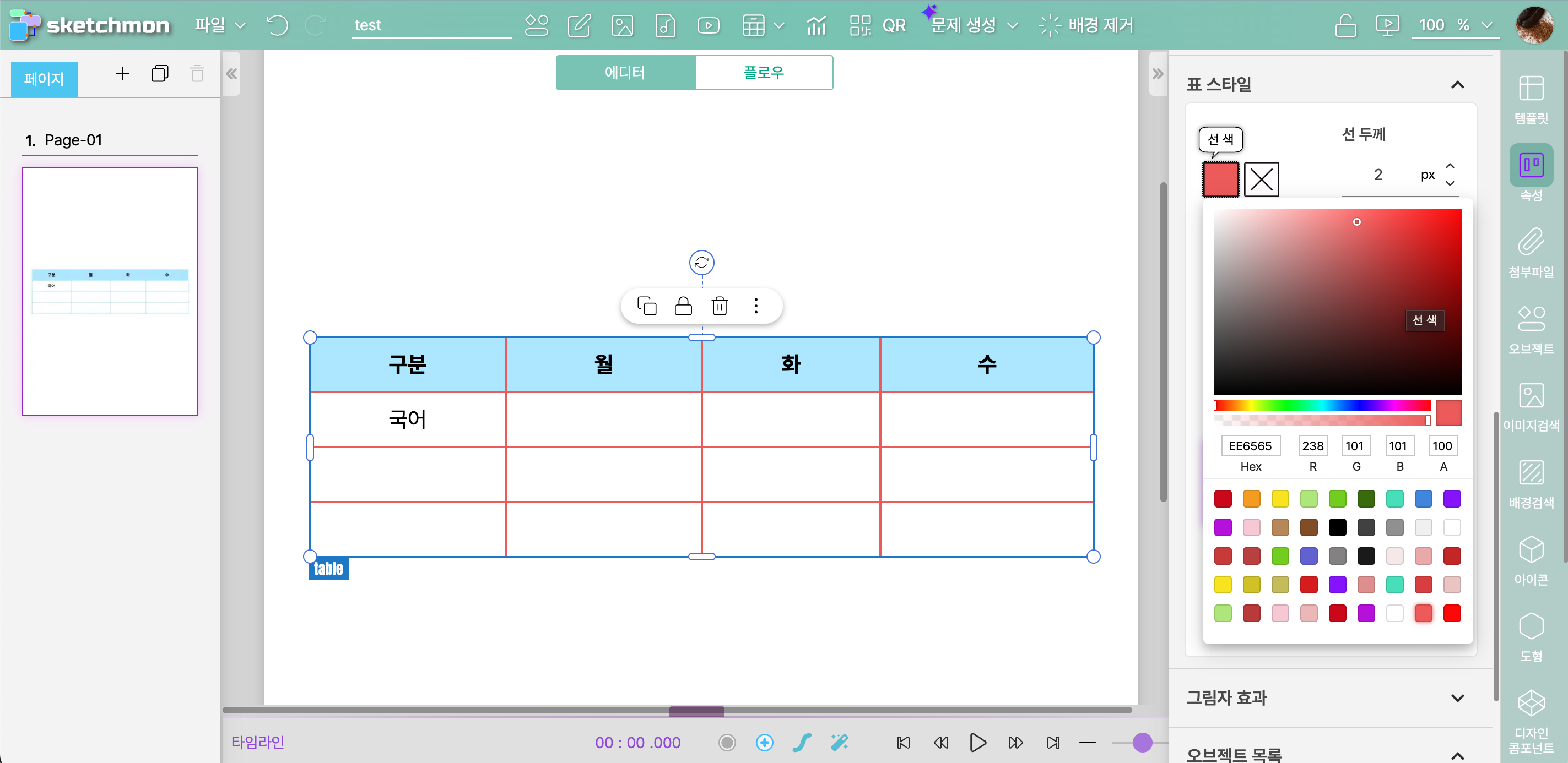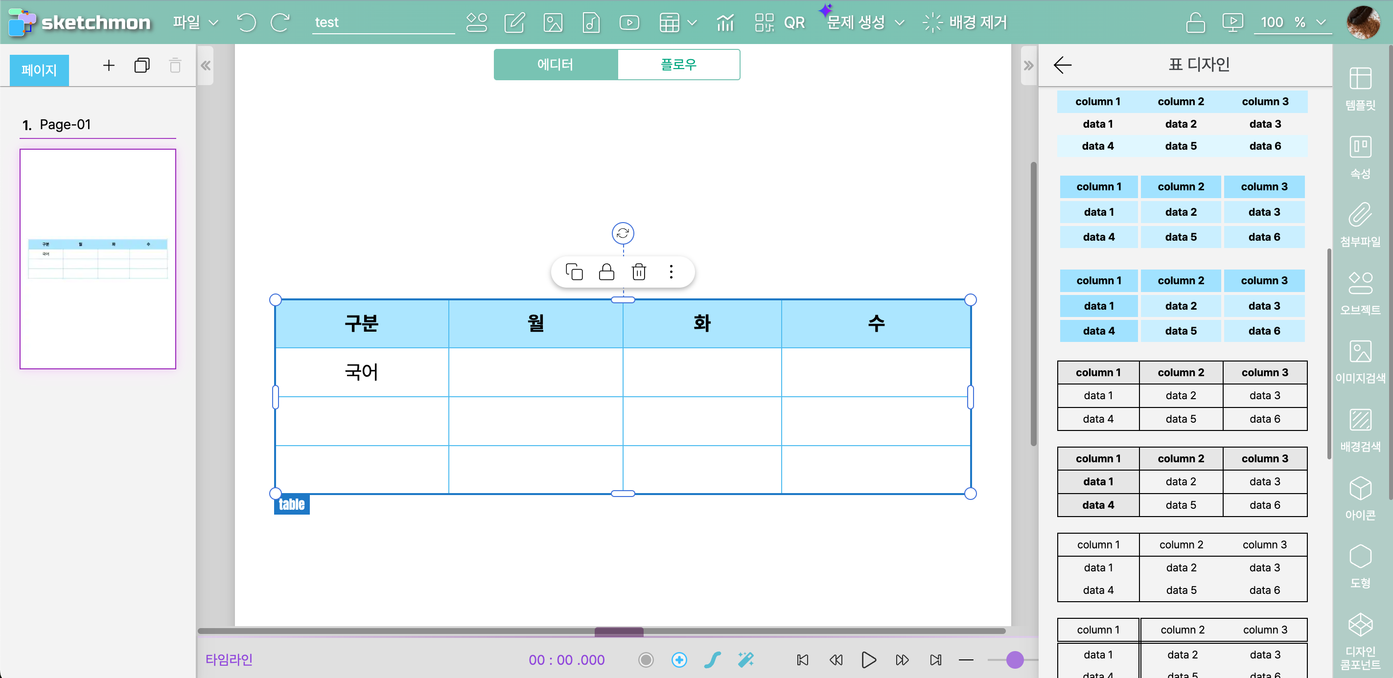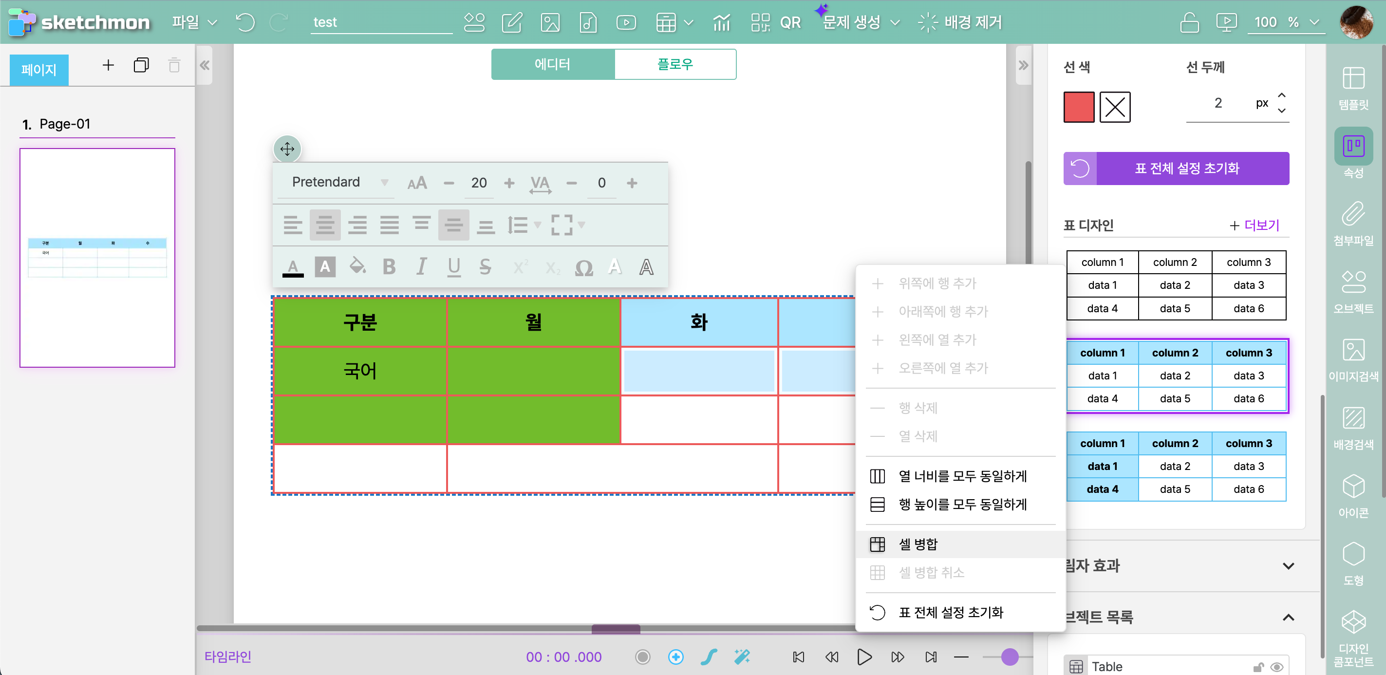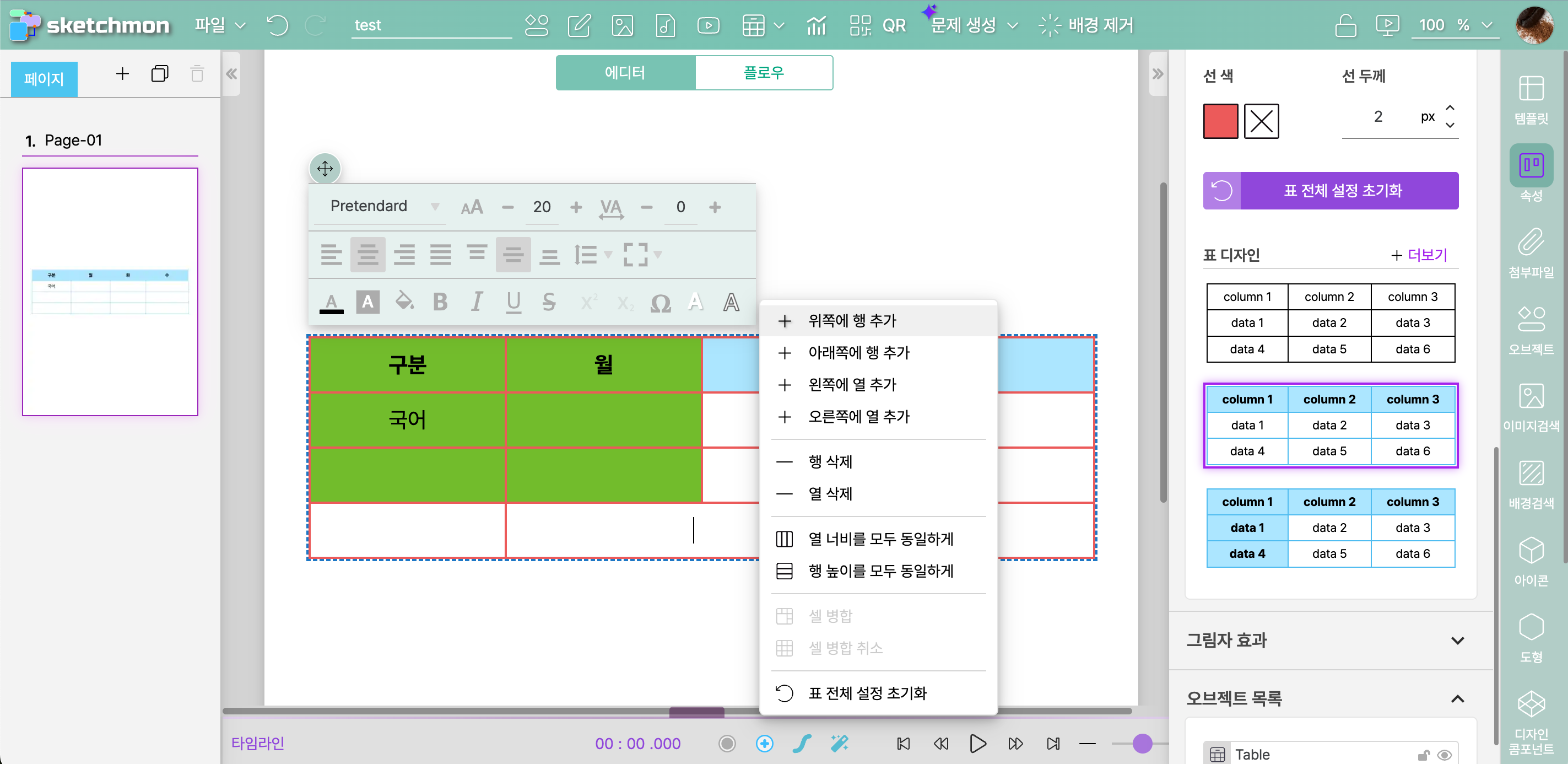 스케치몬에서는 표를 쉽게 만들고, 간편하게 디자인을 변경할 수 있습니다.